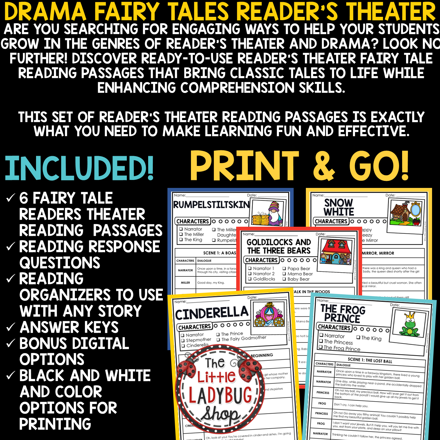 Fairy Tales Drama Reader’s Theater Scripts 3rd 4th Grade: Are you searching for engaging ways to help your students grow in the genres of Reader’s Theater and Drama? Look no further! Discover Ready-to-Use Reader’s Theater Fairy Tale Reading Passages that bring classic tales to life while enhancing comprehension skills.