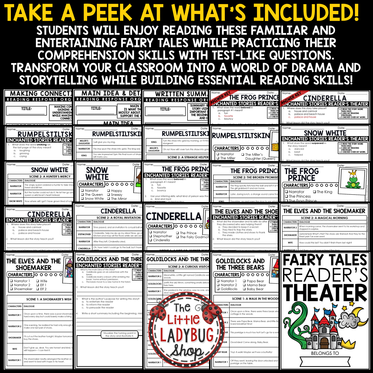 This set of Drama Fairy Tale Reader’s Theater Reading Passages is exactly what you need to make learning fun and effective. Students will enjoy reading these familiar and entertaining fairy tales while practicing their comprehension skills with test-like questions.