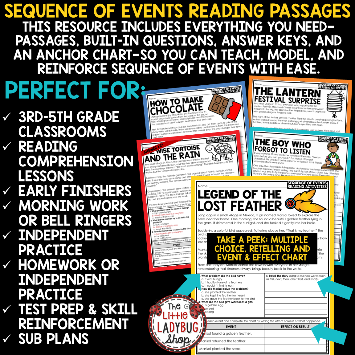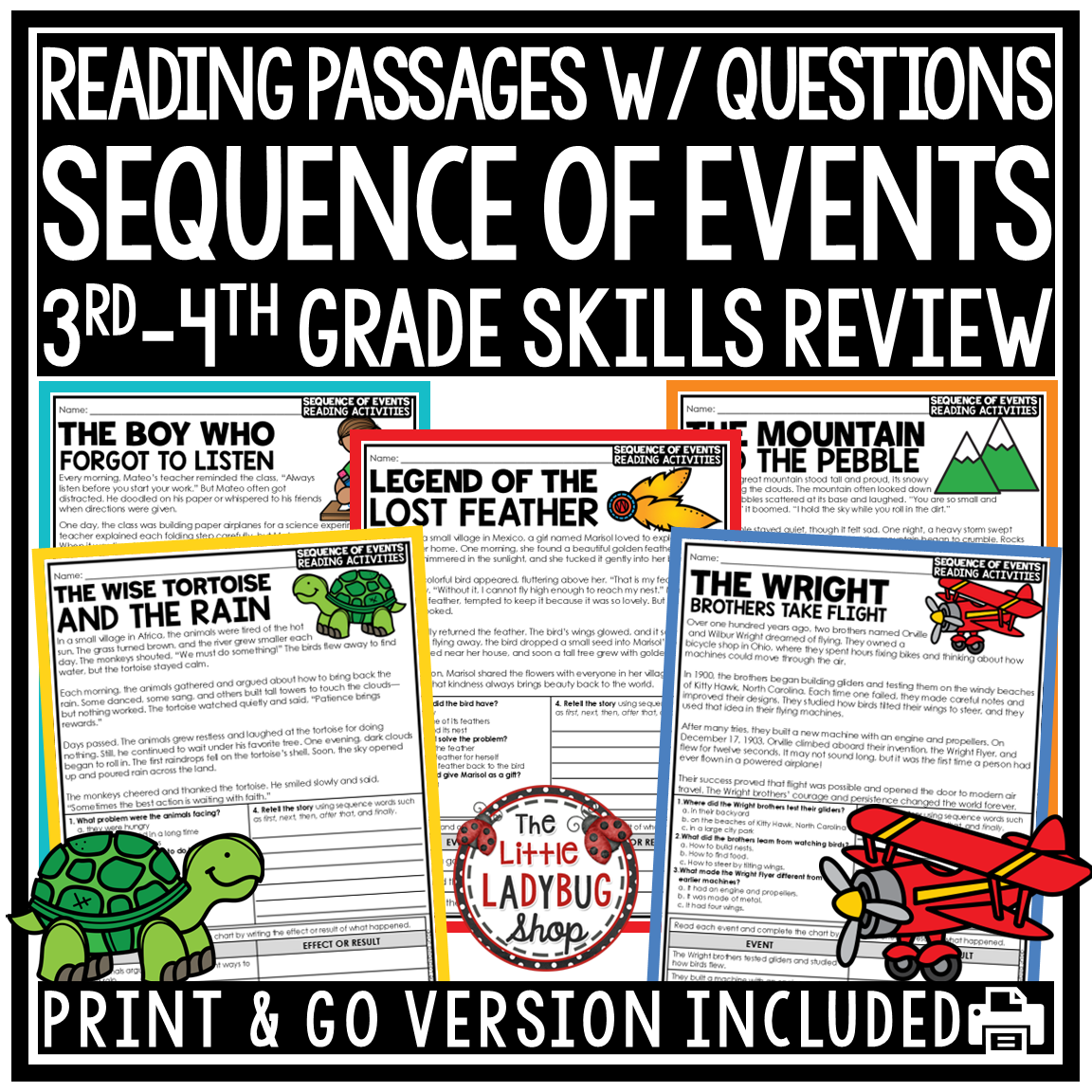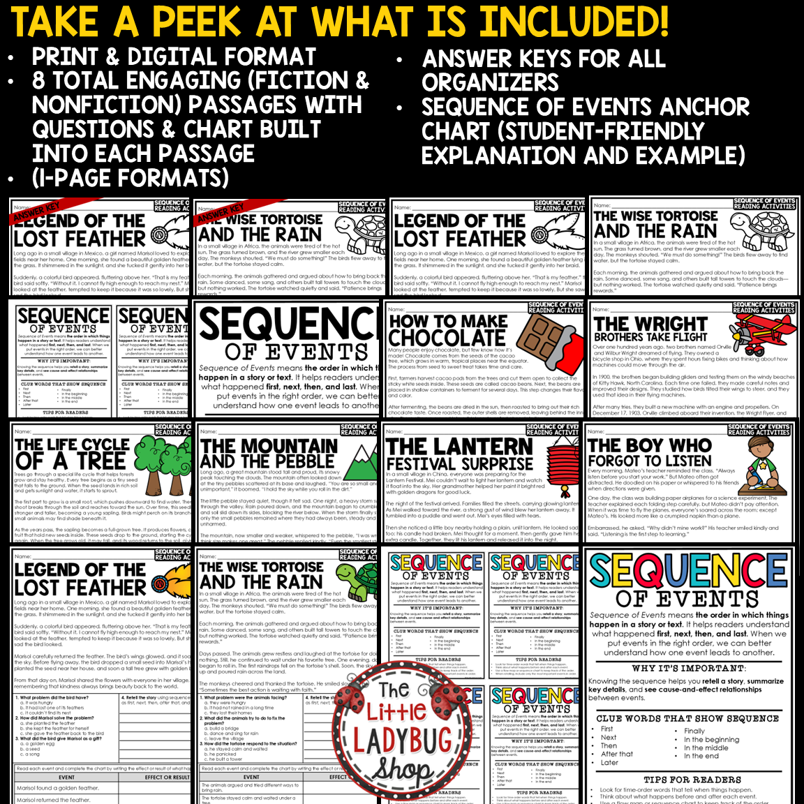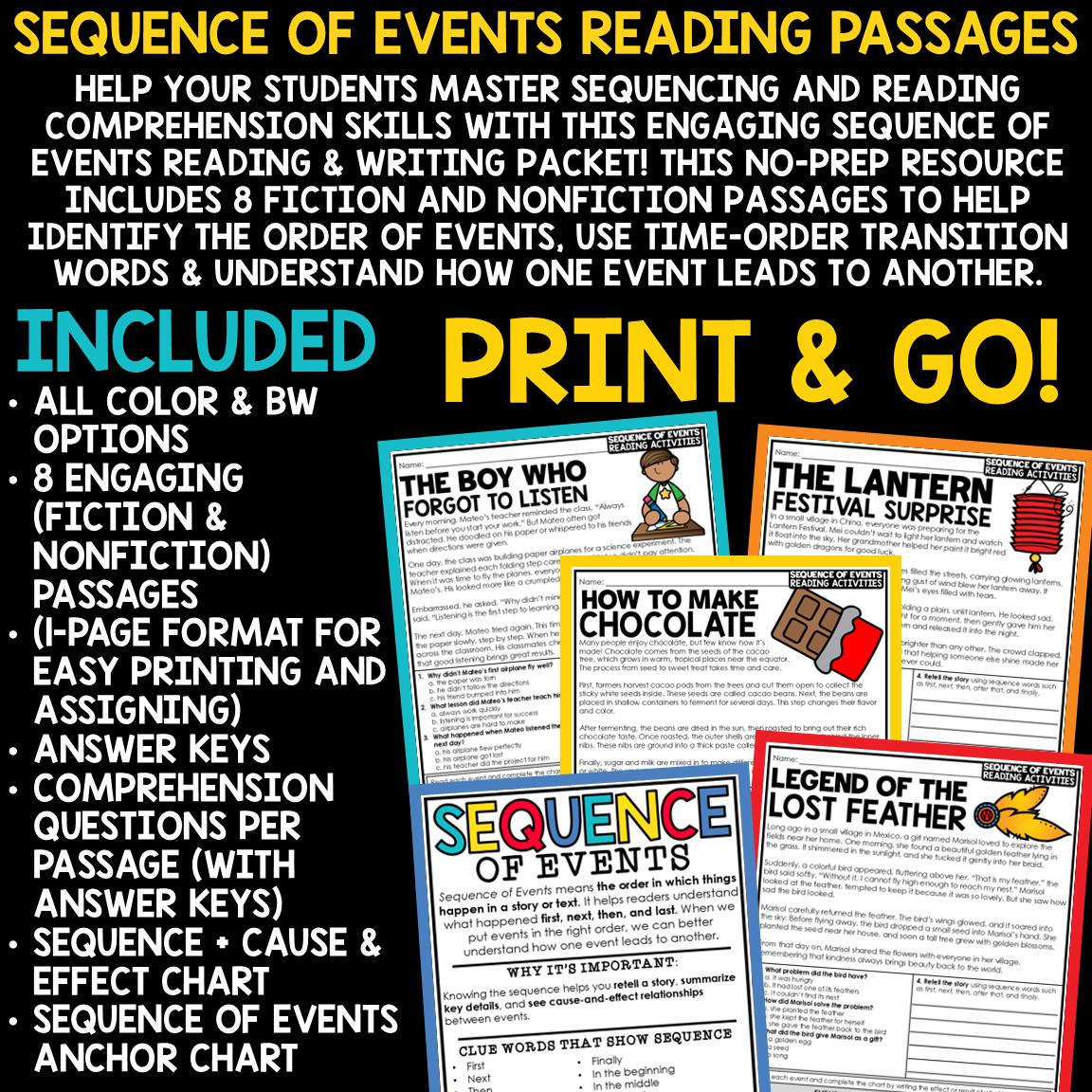 Sequence of Events Reading Comprehension & Writing Packet: Help your students master sequencing and reading comprehension skills with this engaging Sequence of Events Reading & Writing Packet! This no-prep resource includes 8 short fiction and nonfiction passages designed to help students identify the order of events, use time-order transition words, and understand how one event leads to another.